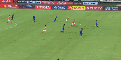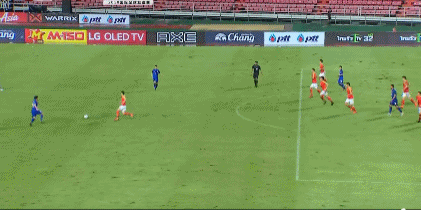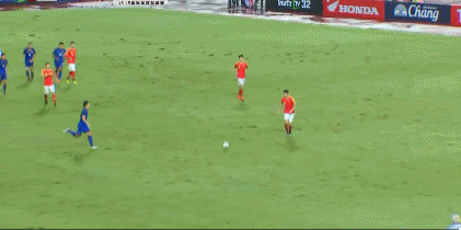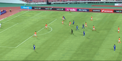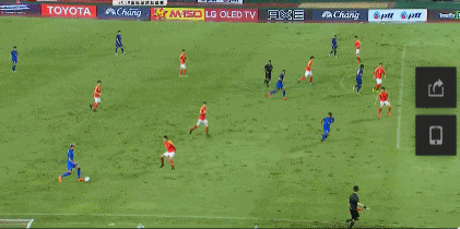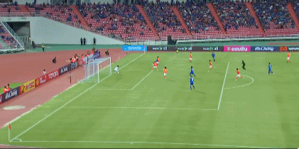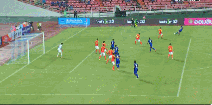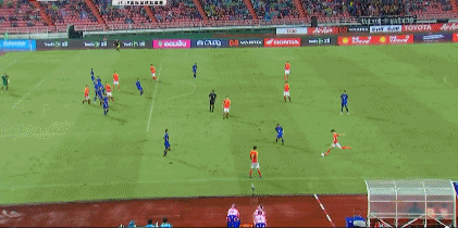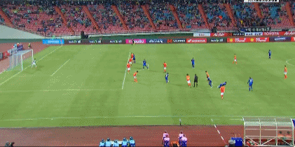 第31分钟,泰国快发定位球,大禁区外左侧的颂克辛右脚直接远射打高。