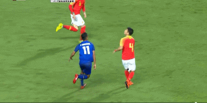 第23分钟,张琳芃在拼抢当中踢倒考邦, 裁判给出黄牌警告张琳芃。