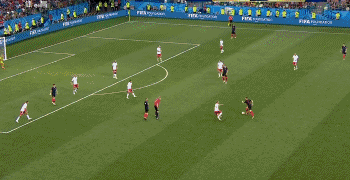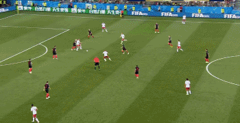 第38分钟,克罗地亚在前场获得任意球机会,莫德里奇主罚传中,洛夫伦禁区右侧前点争顶稍稍偏出