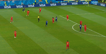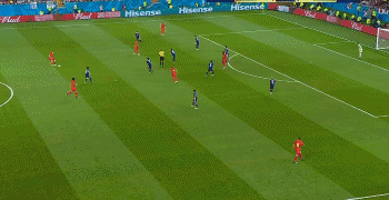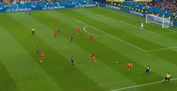 第7分钟,日本队打出流畅的地面配合,乾贵士左边路下底传中被比利时防守队员挡出。