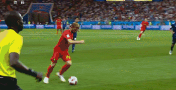 第25分钟,德布劳内右路传中,卢卡库得球后收到日本后卫的干扰无法顺利起脚。