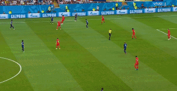 在补时阶段的第93分钟,日本队全军压上欲争取杀死比赛的机会。他们一次又一次的努力终于换得了一次前场任意球机会,不过罚球的位置离球门较远。本田圭佑射出了电梯落叶球,库尔图瓦面对来势汹汹的皮球飞身将其扑出。日本队因此获得了一次角球机会。
