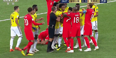 第38分钟,英格兰队获得任意球机会。在排人墙的过程中,巴里奥斯用头顶到了亨德森,随后两方队员发生了口角冲突。裁判向巴里奥斯出示了黄牌。