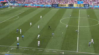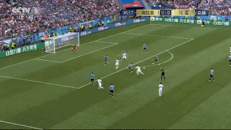 在阵地战进攻效用未达到最佳的情况下,法国队依靠定位球打破了僵局。这个进球不仅打破了乌拉圭队稳守反击的策略,也让法国队拥有了利用乌拉圭队阵型前提后进行传跑攻击的空间。