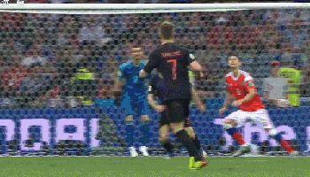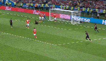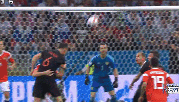 第100分钟,克罗地亚获得角球,莫德里奇角球开入禁区中路,维达甩头攻门得分。俄罗斯1-2克罗地亚。