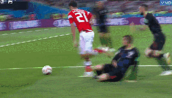 第24分钟,中路拉基蒂奇把球护住,萨梅多夫将拉基蒂奇放倒在地。