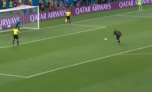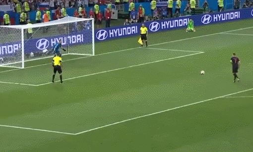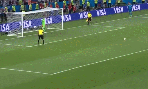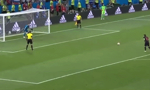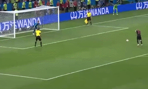 克罗地亚主罚的球员科瓦西奇,直接打右下角,门将判断正确把球扑出。