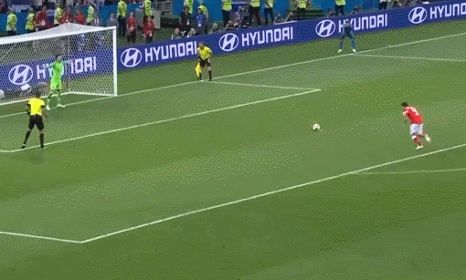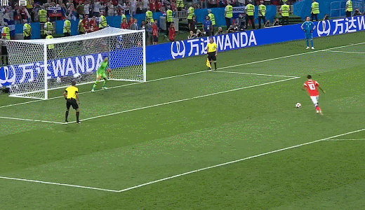 第四轮:俄罗斯主罚球员伊格纳舍维奇,伊格纳舍维奇冷静推射球门左下角破门