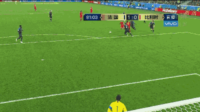 第 51 分钟,格里兹曼发出角球,乌姆蒂蒂力压费莱尼头槌破门,法国队 1 比 0 领先。