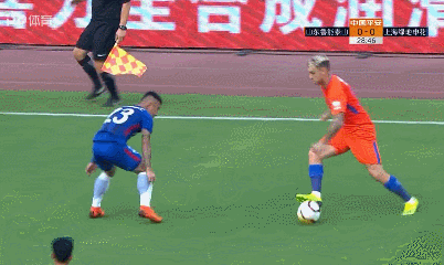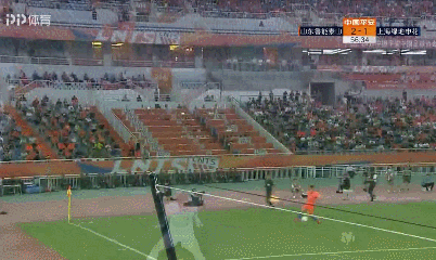 第23分钟,申花赢得角球机会。登巴巴禁区内争顶没打上力量,皮球被王大雷没收。