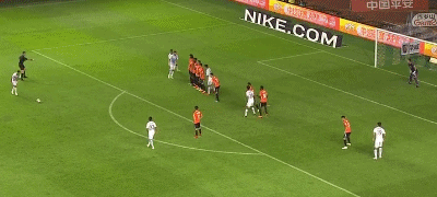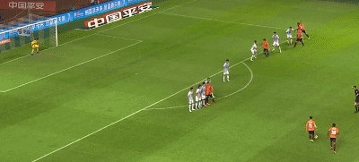 第12分钟,富力大禁区前获得一个位置极佳的定位球,扎哈维开出的任意球越过人墙后被张烈神勇扑出。