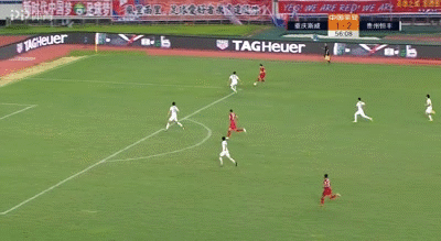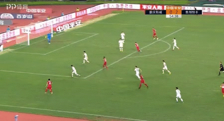 第55分钟,重庆扳回一球,彭欣力前场左侧横传后插上,塞巴得球顺势送出直塞,彭欣力左脚传中,卡尔德克禁区内右侧得球右脚小角度抽射,皮球从张思鹏头顶呼啸而过击中远端立柱内侧弹入网窝,重庆1-2贵州。
