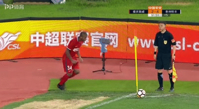 重庆球员示意,本方有球员倒在禁区内,但主裁判石祯禄却认为进球有效,重庆0-2贵州。