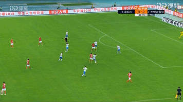 开场之后,恒大还是继续贯彻快速推进结合身后处理的打法,左路的于汉超频频内收,成为球队在左肋部以及中路最重要的出球点。图中回合,于汉超内收到中路转身之后第一时间送出长距离直塞,高拉特迅速反越位插上。