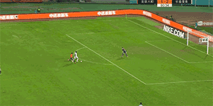 本场比赛进行到82分钟,长春亚泰打出反击,前场的9号伊哈洛形成单刀球,当带球进入罚球区后,北京人和队的29号队员,防守时有个干扰动作,比赛继续,伊哈洛射门,球出底线。