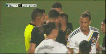 上轮联赛上演同城德比,洛杉矶银河面对洛杉矶FC,比赛进行到第18分钟的时候,双方发生了冲突,两队球员推搡在一起。此时伊布突然伸出手,抚摸了一位对手的脸庞。