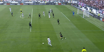 第6分钟,C罗在禁区弧顶处接到马图伊迪的传球一脚低射,皮球偏出球门直接出了底线。第11分钟,尤文图斯左边路进攻,桑德罗在前场左侧传中到小禁区,C罗头球攻门,皮球偏出球门。第13分钟,萨索洛获得一次左侧角球机会,角球开出,费拉里的头球攻门击中横梁。第19分钟,埃姆雷-詹在禁区外中路得球后右脚弹射,皮球偏出左侧立柱。第22分钟,萨索洛获得左侧角球机会,费拉里的头球攻门被什琴斯尼得到。
