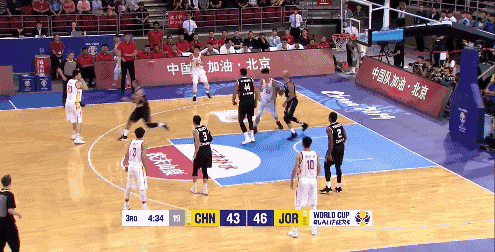 比赛一开始,蓝队就处于落后,我们外线手感不佳,约旦队的进攻则十分高效,一举取得两位数的领先优势。