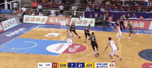 韩德君在内线接连取分;本场一直在外线受到重点照顾的吴前打四分成功;于德豪,我们的豪哥飙中一记让全队士气高涨的三分!第三节结束后,蓝队把比分追到只差2分。