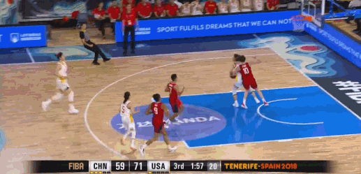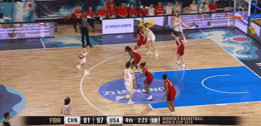 2018年女篮世界杯在西班牙继续进行,中国队迎来小组赛第二个对手美国队。面对强大的对手,中国队爆发出惊人能量,全场维持着10分左右的分差,最终以88-100不敌对手,小将韩旭砍下20分5篮板2盖帽。