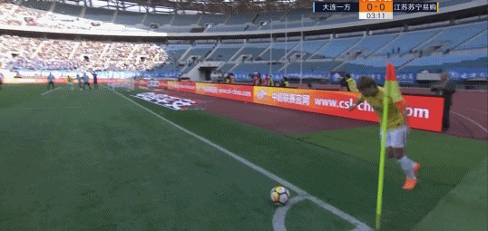 北京时间10月6日15点30分,2018赛季中超联赛第25轮,大连一方坐镇主场迎战江苏苏宁。第4分钟,苏宁获得角球机会,汪嵩开出角球,中点的帕莱塔左脚弓射把球打进球门!苏宁1-0领先一方。