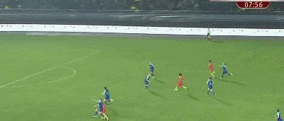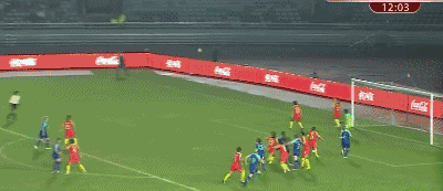 第33分钟,海瑞纳右路拿球调整后传中,但皮球直接飞向中国队球门,传中变成了一脚吊门,不过皮球打在横梁上弹出,中国队逃过一劫。