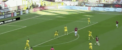 第56分钟,苏索右路横传到禁区前沿,博纳文图拉摆脱后卫突至禁区弧顶处起左脚大力抽射,球碰后卫稍稍变线后飞入大门!AC米兰3-0扩大比分。
