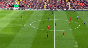 利物浦中场缺乏足够的创造性,展现出的是机动性充足但是没有创造性的态势。因此,他们在进攻中十分依赖菲尔米诺的回撤以及马内的持球冲击,然后让萨拉赫顶在边路前端作为一个接球爆点。与安切洛蒂的限制思路相似,瓜迪奥拉在本场比赛中的限制手段完全相同:不让菲尔米诺舒适的回撤串联,以及不给马内持球推进的机会。