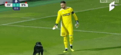 天空体育消息,在上周末一场格鲁吉亚的顶级联赛中,一只汪星人突然冲入了球场,并且实力卖起了萌。