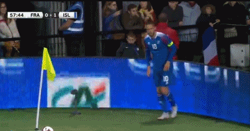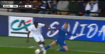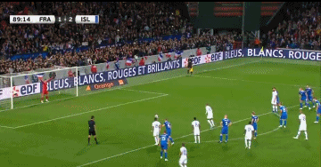 第38分钟,冰岛开出左侧角球,西于尔兹松球门后点的头球攻门被洛里斯在门线前扑出,比亚尔纳松、芬博阿松和埃约尔松门前连续的补射又都被扑出,法国队逃过一劫。