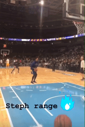 库里在赛前手感非常不错,当利文斯顿在练罚球的时候,库里把自己的罚球线迁移到中线去。李文看了都不想罚篮了。
