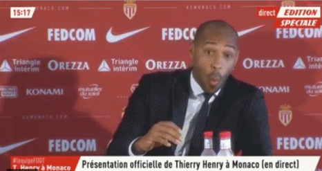 在发布会现场,亨利习惯性地使用英语回到记者的提问。说了5分钟后,听到现场翻译,他突然意识到这是在法国,他连续做出几个大吃一惊的表情。在向现场记者表示抱歉后,亨利用法语回答提问。