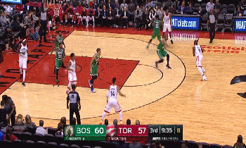 上半场两支球队势均力敌一直僵持,绿军凭借第一节和第二节末段的两波攻势稍占上风,第三节伦纳德6分30秒里砍下15分帮助猛龙扭转局面,末节面对绿军反扑,猛龙最后时刻在洛瑞的带领下送出一波10-0的攻势将领先扩大至两位数奠定胜局。