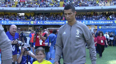 进场时,葡萄牙前锋总会配上自己标志性的一跳,从而为比赛蓄力。不过在此前的一场意甲比赛中,C罗就因为这样腾空跳起而吓到了旁边的小女孩。