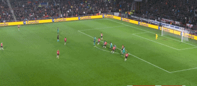 埃因霍温第29分钟取得领先,桑切斯边路回传,阿尔德韦雷尔德在洛萨诺紧逼下丢球,洛萨诺突入禁区距门11米处射门打在回追铲球的阿尔德韦雷尔德腿上弹起入右上角,1比0。