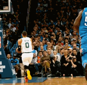 在本场他还贡献了一次隔扣,面对乔治的防守,拥有曼巴精神的塔图姆不顾一切送上当头一扣!这孩子还真的是不大牌的人他还不扣呢!