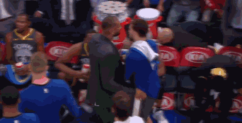 事情是这样的,当比赛进行到第二节中断的时候,KD被吹失误,而坎特火上浇油突然对阿杜说起垃圾话,两人开始对喷起来,好在有格林把他们拉开。