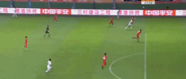第25分钟,帕托远离禁区的任意球直接吊向后点,杨旭头球回蹭到禁区中央,赵旭日无人看防下迎球怒射将球打进,此时边裁举旗示意杨旭已经越位在先,进球被判无效。