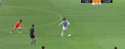 第28分钟,富力前场快发边线球,扎哈维底线附近面对权敬源的防守送出穿裆传球,雷纳尔迪尼奥门前拿球晃过张鹭的防守后小角度推射空门,可惜他的射门不够精准,皮球最终击中了近侧的球网。