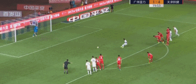 第79分钟,富力开出前场左侧的角球,郑达伦后点头球解围不远,王杰身后解围时将身前的雷纳尔迪尼奥撞倒,王迪再次判给富力一个点球的机会,这一次雷纳尔迪尼奥站在点球点前主罚球门右上角得手,富力2-4扳回一城。