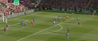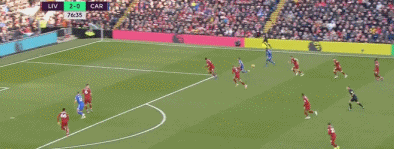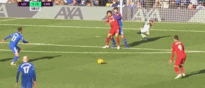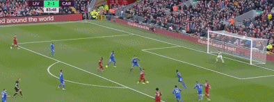 第41分钟,阿诺德右侧角球传中,范迪克禁区内射门高出横梁。1分钟后,马内做球,菲尔米诺禁区弧顶射门偏出右门柱。补时第2分钟,莫雷诺禁区右侧传中,拉拉纳后门柱头球攻门被防守球员门线上解围。上半场结束时,利物浦凭借着萨拉赫的进球,主场1-0领先卡迪夫进入中场休息。