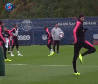 法甲即将迎来一场焦点大战,巴黎迎战马赛。在赛前训练时,内马尔秀出自己鬼魅般的脚法,将球踢进桶里。