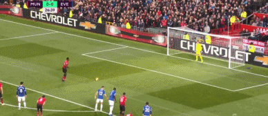第26分钟,马夏尔左路突入禁区被奎耶绊倒,主裁判判罚了点球。随后博格巴操刀主罚被皮克福德神勇扑出,博格巴轻松补射入网,曼联1比0领先埃弗顿。