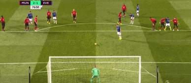第51分钟,理查利森送出绝妙直传球,伯纳德单刀突入禁区晃过出击的德赫亚打空门,球却打在边网上。第54分钟,马塔直传,拉什福德突入禁区右翼的抽射被皮克福德挡出。三分钟后,马塔斜传,博格巴禁区中路的射门再度被皮克福德救下。