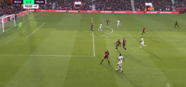 首先我们来回顾一下拉什福德的这粒进球,第91分钟,博格巴左路突破后起球传中,门前拉什福德一开始球没停好,经过调整后低射得手。其实,在博格巴起球之后,拉什福德在对方后卫阿克的贴身防守下是没有任何优势的,不过拉什福德非常的聪明,他并没有选择与其硬碰硬的死磕,而是静静的在阿克身后等待机会,等到对手犯错。