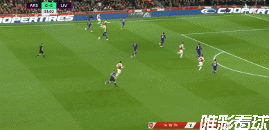 第3分钟,奥巴梅扬左路和科拉希纳茨打出二过一的配合,科拉希纳茨下底低平球横传到门前,阿利森赶在拉卡泽特跟进射门之前将球没收。