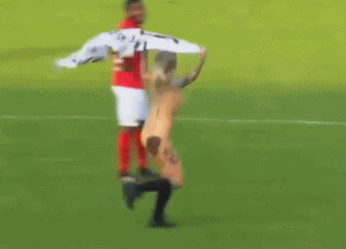 ▌目瞪口呆!一女球迷闯进荷兰联赛激情裸奔