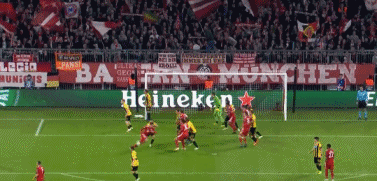 第55分钟,基米希右路传中,格雷茨卡禁区中路凌空垫射,球被门将单手挡出底线。两分钟后,穆勒传球,格纳布里的远射稍稍高出横梁。第61分钟,莱万多夫斯基突入禁区左翼攻门,球被门将神勇挡出底线。