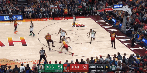 凯尔特人首节发力打出一波10-0的高潮取得领先,还好暂停回来只爵士开始主攻内线,戈贝尔连续获得扣篮机会,率领爵士回敬一波12-0将比分反超。随后在双方陷入拉锯战的情况下,还是戈贝尔攻防两端的鼎力支持让爵士一众射手获得良好的投篮空间。