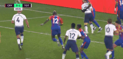 下半场比赛第49分钟,水晶宫开出右侧角球,汤姆金斯头球没有顶上力量,洛里将球击出。两分钟后,又是水晶宫的右侧角球,汤姆金斯后点头球顶偏。第55分钟,热刺左侧角球被解围,随后外围远射没有打上力量,禁区中路凯恩头球顶高。第65分钟热刺打破僵局,凯恩接到左侧角球头球攻门,亨内西将球挡出,福伊特跟进头球补射破门!热刺客场1-0领先水晶宫。